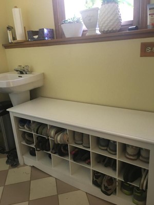 we ordered this for an entryway and it works perfectly. I also ordered a cushion for the top so it looks like a cozy place to put your shoes on. even holds my son's size 15/16 shoes.