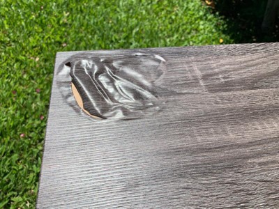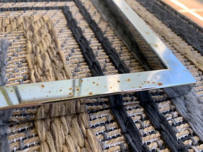 We ordered two of these tables to compliment our patio set. The tables arrived in good shape and were simple to assemble. Unfortunately, they were not designed to withstand outdoor applications, yet the description did not specify interior use only.. Complaint #1: Although the description describes the tops as being wood with a natural grain, they were actually manufactured resin board topped with a vinyl coating that looked and felt like natural wood — in direct sunlight the vinyl bubbled and blistered unmercifully and rendered them unusable - we had to use a boxcutter to slide the bubbles to make the surface somewhat flat again. It's only a temporary fix, as well have to remove the vinyl coating completely and find a more fitting solution. Complaint #2: Also related to being outdoors. Although they are under a roofed patio and not exposed to weather directly, the chrome base began to rust after only a few weeks. As with Complaint #1, if we wish to continue using these end tables, we will have to address the rust.