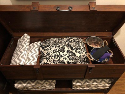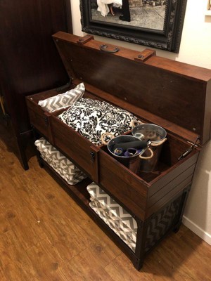 HOMES: Inside + Out Millan Trunk Style Sofa Table Vintage Walnut: Entryway Furniture with Lift-Top Storage Shelf