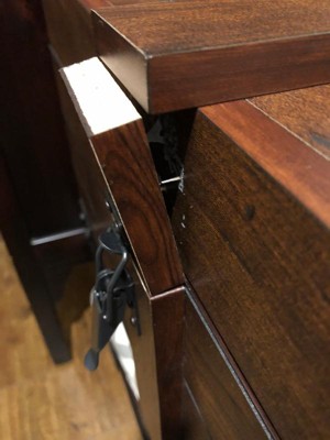 My husband assembled this piece with little to no difficulties. I am pleased with the size and style of the item as I needed plenty of storage in my entry for items used on our front patio. One suggestion would be to add rubber covers for the feet, they are raw metal edges and will likely cut into your flooring. We are working on a solution for that. I am unable to close the patches as the small ‘blocks’ came off when I did so. A design flaw there. I gave it 3 stars for quality as it is made of particle board. At this price point I am fine with that! Other than that I am pleased and would recommended this item when needing storage.