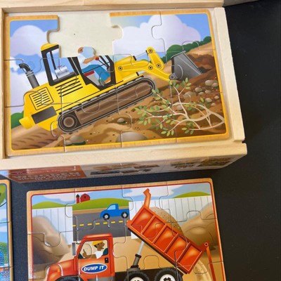Melissa & Doug Construction Vehicles 4-in-1 Wooden Jigsaw Puzzles (48pc): Shapes, Fine Motor Skills, Storage Container