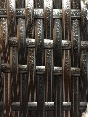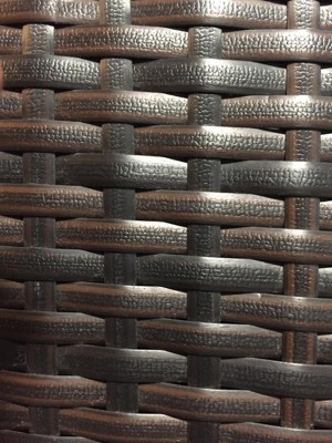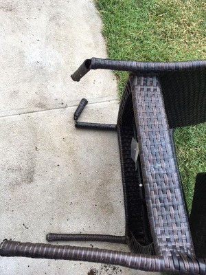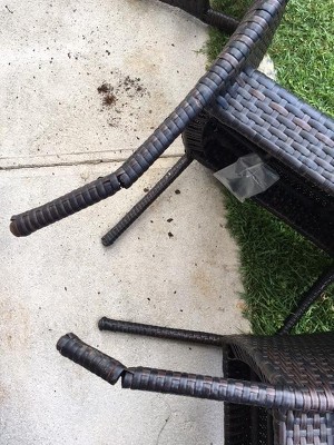 I unpacked the chairs and was happy except for a few scratches in which the top color was removed to reveal an underneath orange color. I thought, ok, I can live with a few scratches. I then unwrapped the table and noticed the table's wicker does not match the chairs. The chairs look like the wicker color/pattern in photos on Target. Its a mixture of lighter/darker brown tones. For the table, the wicker is a little narrower in width and is a different pattern, with a series of 4 lighter sharp pin stripe lines on a background brown color.