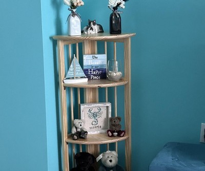 This corner shelf unit is designed for small spaces, offering a practical solution for storage and display. Guests appreciate its easy setup, lightweight design, and sturdy construction, making it ideal for various rooms like bathrooms, kitchens, and bedrooms. While some have noted issues with assembly and wood quality, many find it functional and aesthetically pleasing, especially for those needing a compact shelving option.