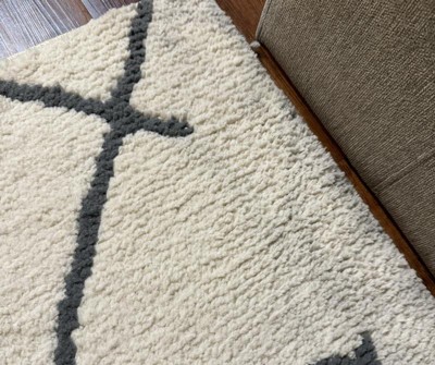 2'6"x3'10" Washable Kenya Fleece Geometric Design Tufted Accent Rug Cream - Threshold™: Modern Indoor Area Rug, Skid-Resistant