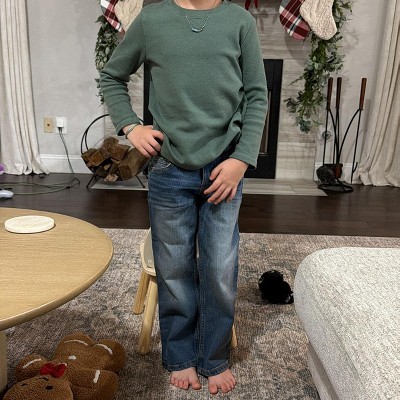 Okay seriously the best jeans my boy has had! He’s 6 yo almost 7 and I ordered this in 5 and the length fits great! Since he’s a skinny boy I’m glad this jeans are boot cut so his legs don’t look like spaghettis and the waist has the little straps on the sides to make it tighter.