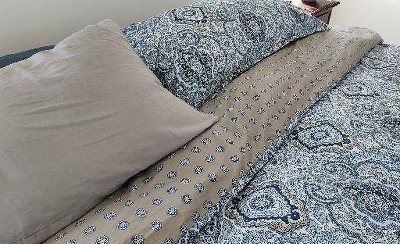 This was an awesome purchase for my husband and I as this is our first "matching" bedding. Very soft after the first wash. 100% cotton is very breathable (we are hot sleepers) and soft on my sensitive skin. There are ties on the insideThe colors are brighter than in the pictures, but we liked it still. The reverse side is nice as well. The only thing I would be weary of is the queen size is somewhat small for a normal queen mattress. A full on fluffy queen down comforter inside this duvet would be too big. So it Does run Small.