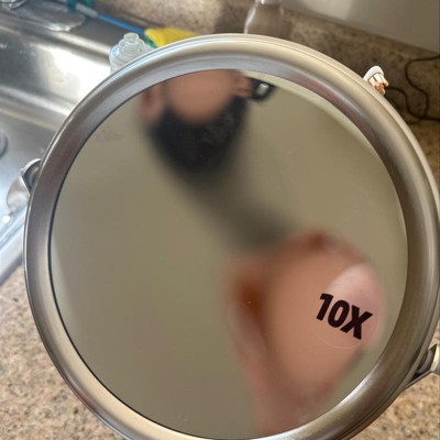 • A: Hi L Hubert - This dual-sided vanity mirror with 10x magnification adds a touch of functional elegance to your space. You may find this information under the description/details on the product description page at target.com! - Kris