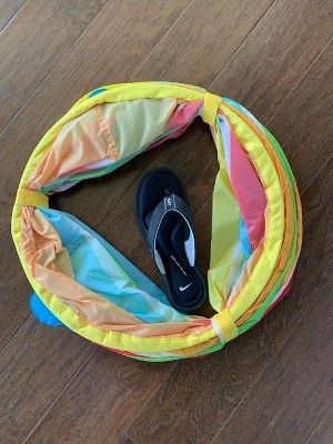 Very cute pop up tunnel! It holds shape really well no matter how rough the kids are with it. We’ve been using it through the crawling phase to now the building forts toddler stage !