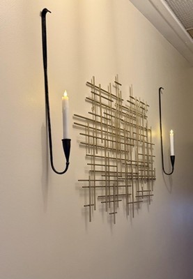 Spruce up your modern lifestyle with this Decorative Wall Sculpture from Threshold™. This decorative wall accent makes a one-of-a-kind addition to your home decor, and it features an abstract crisscross design for a unique, modern look. The sturdy metal finish makes for durable use. Display this piece in either vertical or horizontal orientation on your entryway or living room wall for statement style you and your guests will love.