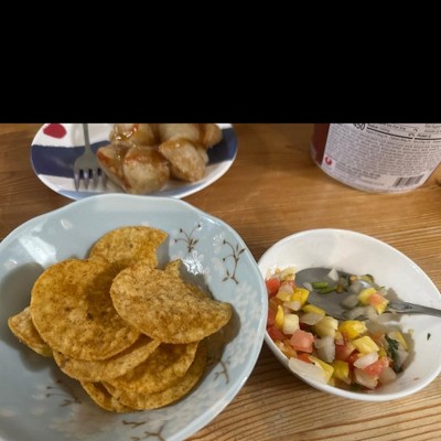 These taste so good. You can always add chopped avocado and cucumber with Valentina and lemon and it’s such a great combo. Probably my favorite non spicy chip.
