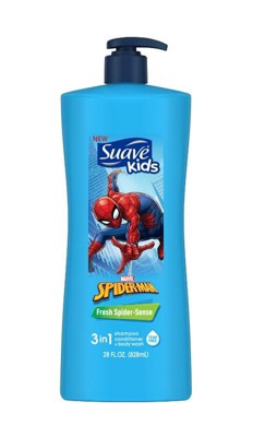 Suave Kids' Spider-Man 3-in-1 Pump Shampoo + Conditioner + Body Wash - Fresh Spider-Sense - 28 fl oz: Paraben-Free, Aluminum-Free