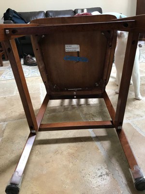 Nice design and sturdy. Good price. Unfortunately the first set of chairs came with a big gouge in one and they had to be sent back. Second set has one chair that is great assembled. The other chair is wobbly even though properly assembled. Don’t want to have to send for a third set of chairs so will make it work. Disappointed that when I called no offers to make it right aside from returning it and taking a chance on a third set. If you get a good set the first time these are great!