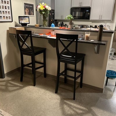 Set of 2 30" X-Back Barstools Black - Crosley: Hardwood Frame, Non-Upholstered, Contoured Back, Fixed Height