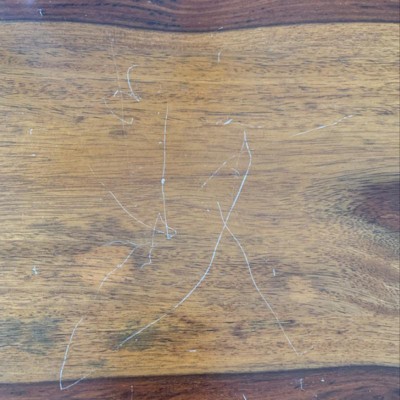 Love the look of the table but after having it for a while we are getting tons of tiny white scratches and are pretty careful with putting down items. It’s not the solid wood I was hoping for. Such a bummer!