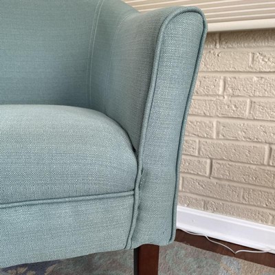 Homepop's Chunky Textured Accent Chair in a modern tub chair style will add fun and fashion to your living room, bedroom or entryway. Covered in a chunky textured solid fabric, this tub chair offers a modern take on a traditional look. This best-selling style is available in a range of chunky solid textured fabrics on wooden legs in a driftwood finish. Medium firm cushion allows for comfort and durability. Make a singular statement or pair two together for a bold seating solution. Easy to assemble and maintain. Please note that fabric and wood colors may appear slightly different due to variations in lighting or screen settings.