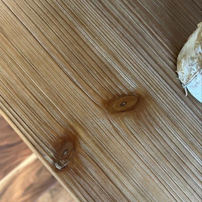 Box came torn and taped back together. The cross bars for stability are missing. I tried to use the Target app to get the missing pieces but it initiated a return, so not sure what to do now. The wood has a strong cedar scent that I hope will go away. My nose is burning after putting the shelf together. I won’t be able to have it in my home if the scent doesn’t dissipate. Shelf looks nice. I would have given it 4-5 stars if it had arrived with all its pieces and didn’t smell.