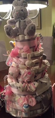 Created a bunny diaper cake and this was so cute. It fit in with all of the other bunny stuff on the diaper cake.
