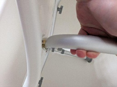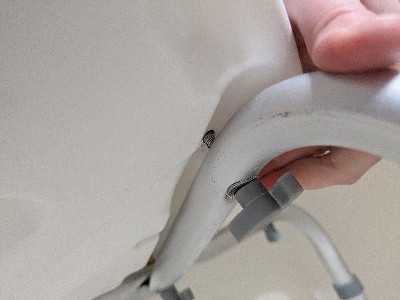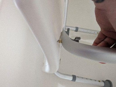 Please reveiw entire owners manual prior to use: Additional safety precautions : 1. Inspect all parts for shipping damage before assembly. If there is shipping damage - DO NOT USE. Contact dealer/carrier for further instructions. 2. Make certain that the height adjusting snap buttons fully protrude through the same respective hole of each leg extension. This will ensure that the leg extensions are securely locked in position and an even height is achieved. 3. Ensure thumb screws are tightened. 4. Check the rubber tips on the leg extensions for rips, wear or if they are missing. Immediately replace any or all if any of these imperfections exist. 5. All four leg extensions with rubber tips MUST touch the floor simultaneously at all times. 6. When used in a tub, make certain the rubber tips are not touching the sides of the tub wall 7. DO NOT stand on chair.