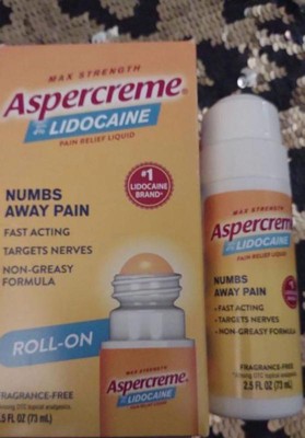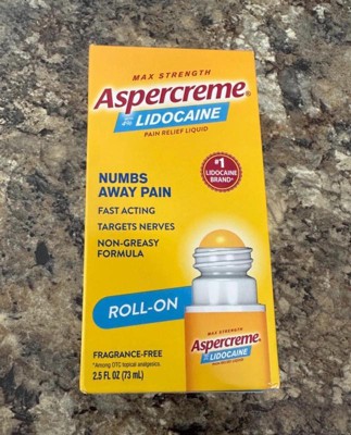 Experience fast and long-lasting relief with Aspercreme Lidocaine Pain Relief Roll-On. This non-irritating topical analgesic numbs away pain with targeted precision. OTC Aspercreme pain relief liquid contains 4% lidocaine, the maximum allowed without a prescription. The non-greasy, fragrance-free formula with moisturizing aloe applies without greasy residue or odor. Aspercreme’s convenient no-mess roll-on applicator keeps hands clean while you apply it to your arm, back, foot, hand, leg or neck. Compact and travel friendly, it's the perfect pain-relief solution after a workout or on the go. Say goodbye to minor pain with Aspercreme, the No. 1 topical lidocaine brand in the U.S.* *Among OTC topical analgesics