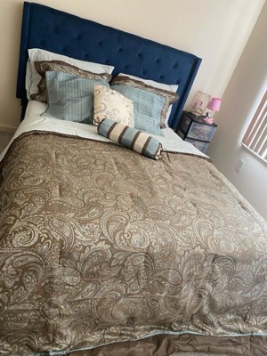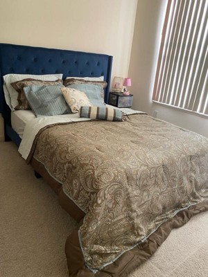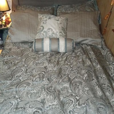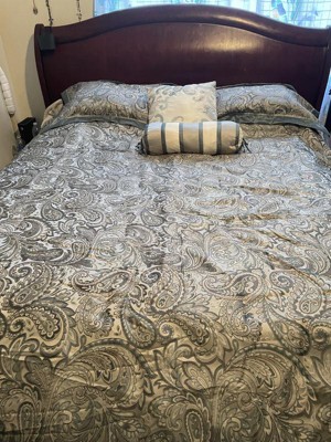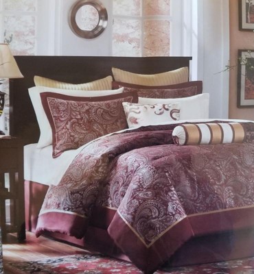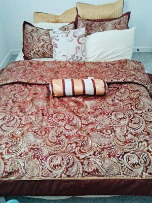 [This review was collected as part of a promotion.] Tradition bed in a bag Cozy Comforter Set, Faux Silk Jacquard Paisley Design - All Season Down Alternative Bedding with Cotton Bed Sheets, Bed Skirt & Toss Pillows. Queen size fits well. Sheets are not the softest, but overall, great Queen sized set!
