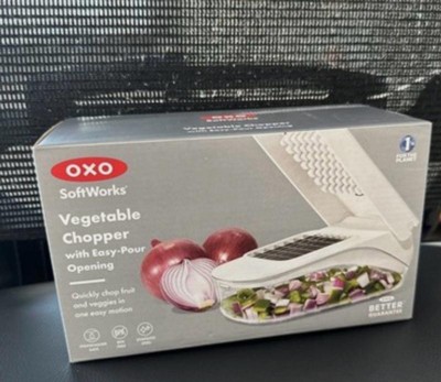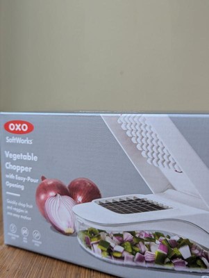 Oxo Good Grips Vegetable Chopper with Easy Pour Opening makes quick work of veggies, letting you chop evenly and pour straight without spills for faster meal prep.