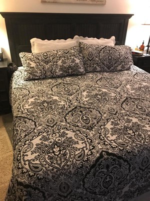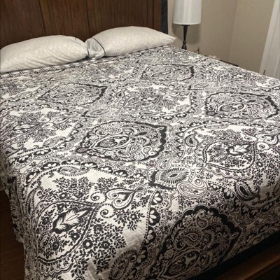 Aubree 3 Piece Quilt Set (King) Black/White - Lush Décor: Reversible Damask Bedspread with Shams