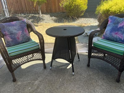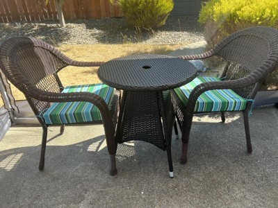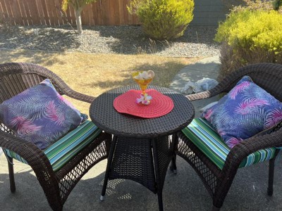 Purchased this table to go under my gazebo where I have a couple little chairs with a little side table and a fire pit as well as two wicker chairs I was gifted. I wanted a matching table that was not too big but big enough to eat at. Just assembled today by myself, as someone that has long nails and it didn’t take me more than 20 minutes. I do think at regular price this is quite expensive for what it is. I purchased it on sale and even that was a little high. But it was the size and color I wanted and I couldn’t find anything elsewhere, literally all were sold with chairs which I didn’t need lol.