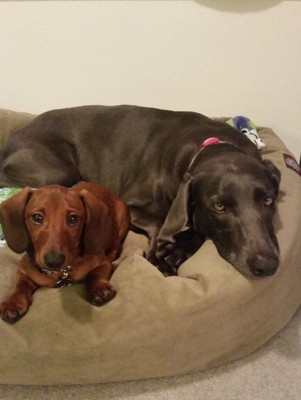 I bought this bed for my 6 year old Weimaraner and she loves it!!! So far it has held up well. It is a nice thick material and fluffed right up after opening the vacuum sealed plastic packaging. I ordered the XL because she likes to stretch out. It is plenty big enough for her and another medium sized dog.