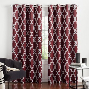 Set of 2 96"x52" Ironwork Sateen Woven Room Darkening Window Curtain Panel Burgundy - Exclusive Home: Living Room Drapes