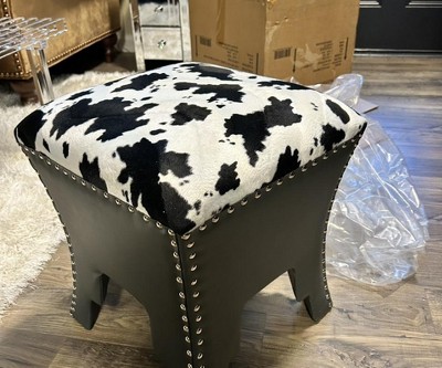 Baxton Studio Sally Modern and Contemporary Cow Print Patterned Fabric Faux Leather Upholstered Accent Stool with Nailhead Brown: Vinyl Upholstery