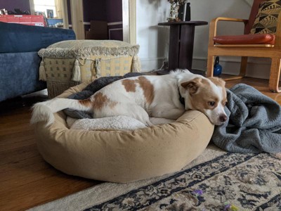 This bed is super plush and comfy and my dog loved it right away! I will say, he loves to dig and the cushion being removable is a little problematic for that habit but not such a big deal. However, I did think the color was going to be much more vibrant and yellow, but it's a plain khaki. I don't hate it but it's just not what I was expecting.