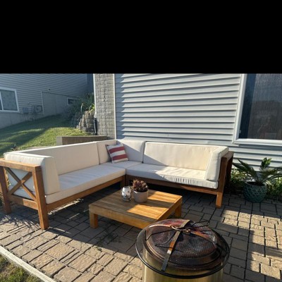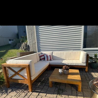 A year into owning this set my family loved it, but the white cushion covers tore along the seams the first time we needed to wash them, and are now also discolored. I can't find a source to replace the covers which is very frustrating as it's now causing this piece to look even cheaper as the wood weathers