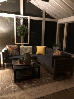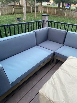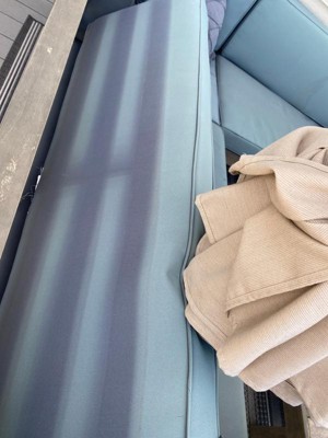 We bought this couch and not even a month after, the cushions started changing colors differently so they don't match. Some are darker blue, some are lighter. Also, when it rains, they hold water so you can't sit on them for a long time after defeating the whole purpose our having outdoor furniture. Save yourself the trouble and don't buy this low-quality outdoor sectional.