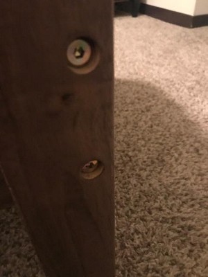 Buy at your own risk, everything i read about this bed was correct. We receive one screw with no thread, missing the round wood covers for the screw holes, chipped wood, the middle bar is a very thin piece of wood, i does not seem as it will hold for very long (we bought a ticker piece of wood), the bed is walnut color that has a shine to it, looks good but somehow cheap. if you are willing to go to the hardware store and complete all the pieces missing and buy reinforcement for the bed, then go ahead and buy.