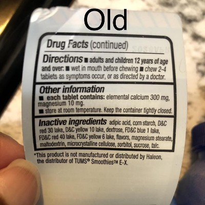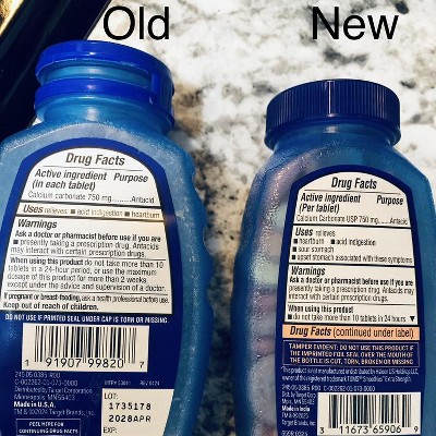 My husband liked these "smoothies" store brand antacids when I bought them last year. When I went to purchase them a second time, they had a new bottle with new label design. It was the exact same product (or so I thought), so I got it for him again. He swears they are different, taste different, worse texture etc. I said I doubt it because they were the same thing as last time, just an updated label. Then I came on here to read reviews and turns out he was right -- others noticed they are not as good. The other berry flavor looks like got downgraded as well. Bummer.