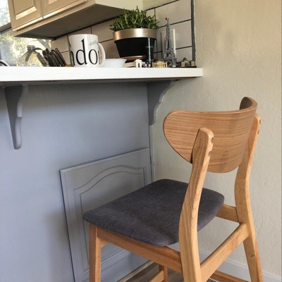 I rarely write reviews, but we've been so happy with these chairs and they're such a good deal, I wanted to share! We've had them for about a year and they have held up beautifully. They are incredibly comfortable and look expensive. I thought I'd have to replace the fabric, but it matches well and looks like its high quality. We have four chairs at our kitchen island -- dark grey walnut -- in a white and grey kitchen and they match very well. Not too large (we initially imagined ones without backs, but these are non-obtrusive and in retrospect more comfortable). You'll love them!