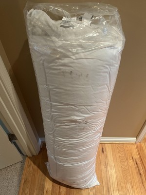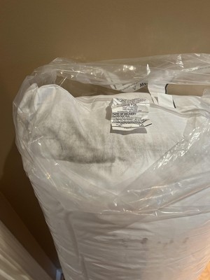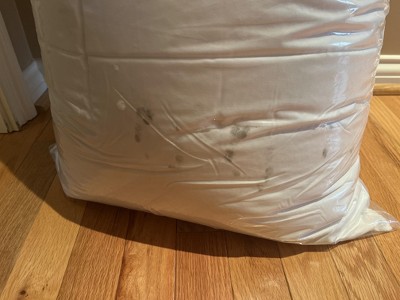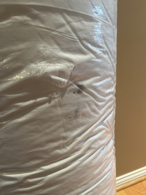 Pillow arrived dirty. It was only in the manufacturer's packaging so it was open at the top and looks like it got dirty through delivery process. Black marks on pillow in my pics are not on the the outer plastic, but on the actual pillow. I will be returning for a replacement. I would recommend the product, but not recommend having this item shipped to you.
