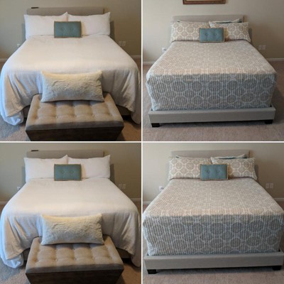 • A: This bed has a modern and contemporary style with stylish grid-tufting design.