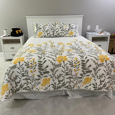 3pc King Aprile Reversible Quilt Set Yellow/Gray - Lush Décor: Polyester Bedspread, Botanical Pattern, Machine Washable