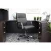 The Modern Executive Conference Chair in black is a fine looking chair made with high quality CaressoftPlus vinyl. CaressoftPlus is a trademarked, ultra-soft, breathable upholstery that looks & feels like leather, but more durable & easy to clean. The chair also features a spring tilt mechanism that allows one to change the angle of the entire seat relative to the floor and allows one to transfer some of the upper body weight to the backrest of the chair. In addition to this the chair also boasts a sturdy 27 inch chrome base with 2 inch nylon dual wheel castors and a 275 lbs. weight capacity.