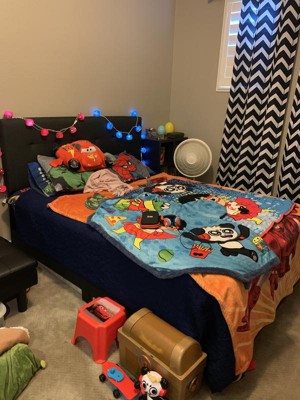 I purchased this bed for my son's room. I was a bit nervous about the quality because of the price, but it is a sturdy bed. It was super easy to put together (took me about an hour total). My son is six and I feel like this bed will really hold up for a long time for him. The headboard is a bit more blueish as other reviews have mentioned. But, it works out great with his room. Would definitely recommend!