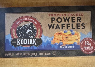 Kodiak Blueberry Power Waffles are crafted for those who need a wholesome, energizing start to their day. Made with 100% whole grains and real blueberries, these frozen protein waffles deliver 12 grams of protein per serving to help keep you satisfied and fueled. Perfect for busy mornings or quick snacks, just pop them in the toaster or oven for a warm, delicious meal. Keep them frozen until you're ready to enjoy a convenient, protein-packed breakfast that powers your day.