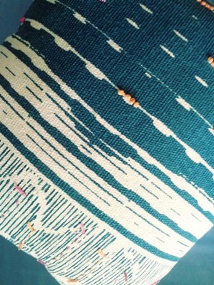 [This review was collected as part of a promotion.] I really enjoy the dark teal industrial pillow by Rizzy Home. It is a nice size pillow 22" x 22" that fits well on my couch. I like that this pillow is handcrafted using recycled cotton materials. The pillow has many different design elements and colors that blend well together - teal, pink, and orange. The pillow is very comfortable and I like that it has a zippered pouch in the back in order to wash.