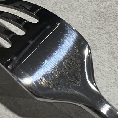 I picked these out a few years ago to start prepping a kitchen set for when I bought a house. I never opened them and they were stored in a container with other utensils and kitchen items. Fresh out of the box, a few of the big forks were already scratched and had rust on them. Love the rest of the set, but it was really disappointing considering how expensive they are.