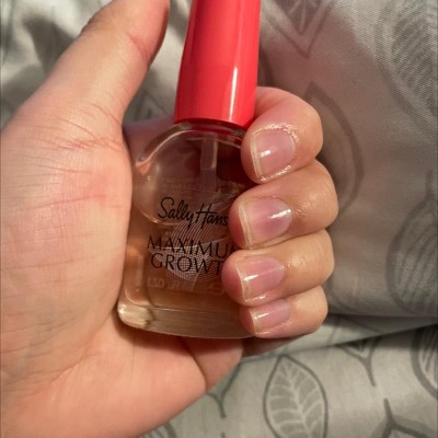 Sally Hansen Maximum Growth Nail Polish is a popular choice among guests seeking to strengthen and promote nail growth. Many have reported significant improvements in nail health, with stronger and longer nails after consistent use. The product is praised for its ease of application, pleasant scent, and effectiveness as both a treatment and base coat. While some guests experienced peeling, the overall consensus is that it delivers on its promises, making it a worthwhile addition to any nail care routine.