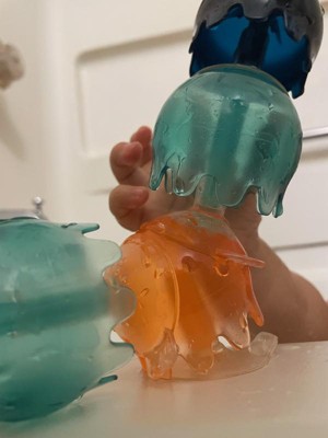 [This review was collected as part of a promotion.] Our toddler loves these! They make bath time so fun for him! They are like little jelly fish. The suction is strong. He plays with them individually or will stack them all together. It’s great they don’t retain water so there is no risk of mold! They’re a non traditional bath toy which is nice to have!