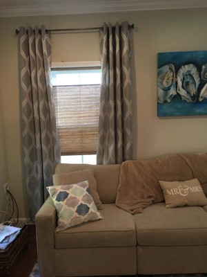 Montrose Ogee Geometric Textured Linen Jacquard Grommet Top Window Curtain Panel Pair - Exclusive Home™