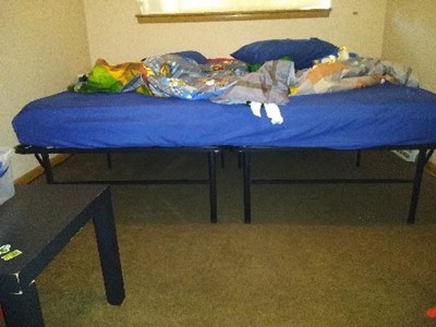 easy to put up, tall enough to put items below bed frame, great for college room when living off campus