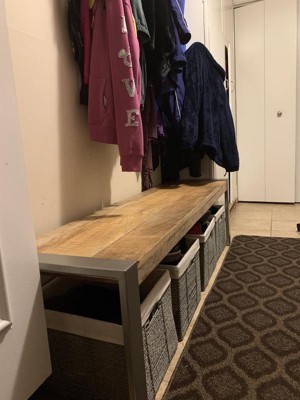 This bench is an attractive and sturdy addition to my mudroom. Very easy to assemble I also purchased the baskets shown under the bench from Target, and we store our shoes in them. They look like they good together, don't you think?