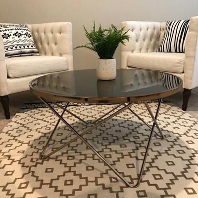 Coffee Table Frosted Champagne - Acme Furniture: Modern Round Metal Frame, Tempered Glass, Criss Cross Base, Living Room Decor